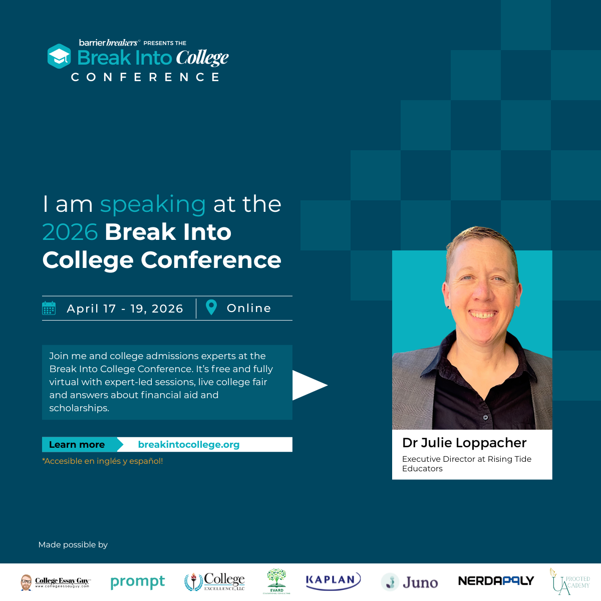 This is just one of the powerful conversations happening at Break Into College, a free online conference. Don't miss it — learn more at www.breakintocollege.org